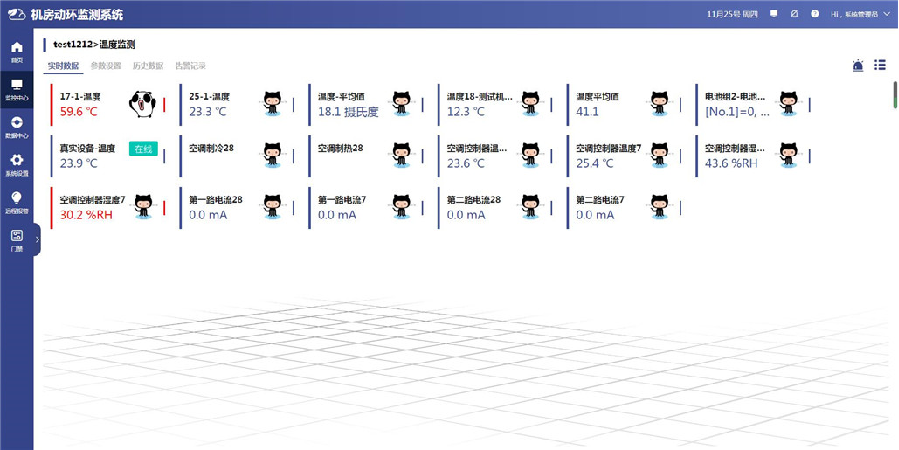 可滾動(dòng)顯示各區(qū)域庫(kù)房的環(huán)境監(jiān)測(cè)數(shù)據(jù),數(shù)據(jù)清晰、直觀,便于管理員進(jìn)行系統(tǒng)查看。