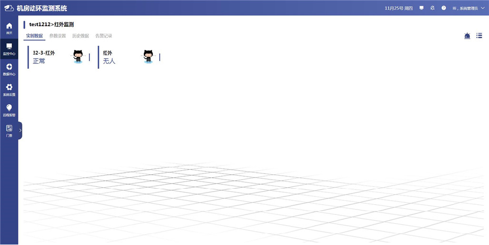 紅外入侵監(jiān)測(cè)頁(yè)面分為設(shè)備狀態(tài)列表、參數(shù)設(shè)置、歷史數(shù)據(jù)查詢/曲線查看、告警記錄四部分。